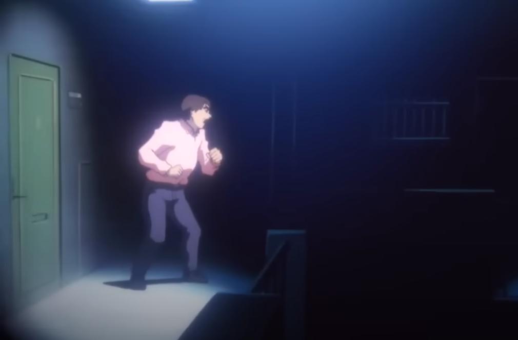 団地で小さな女の子から逃げる男。